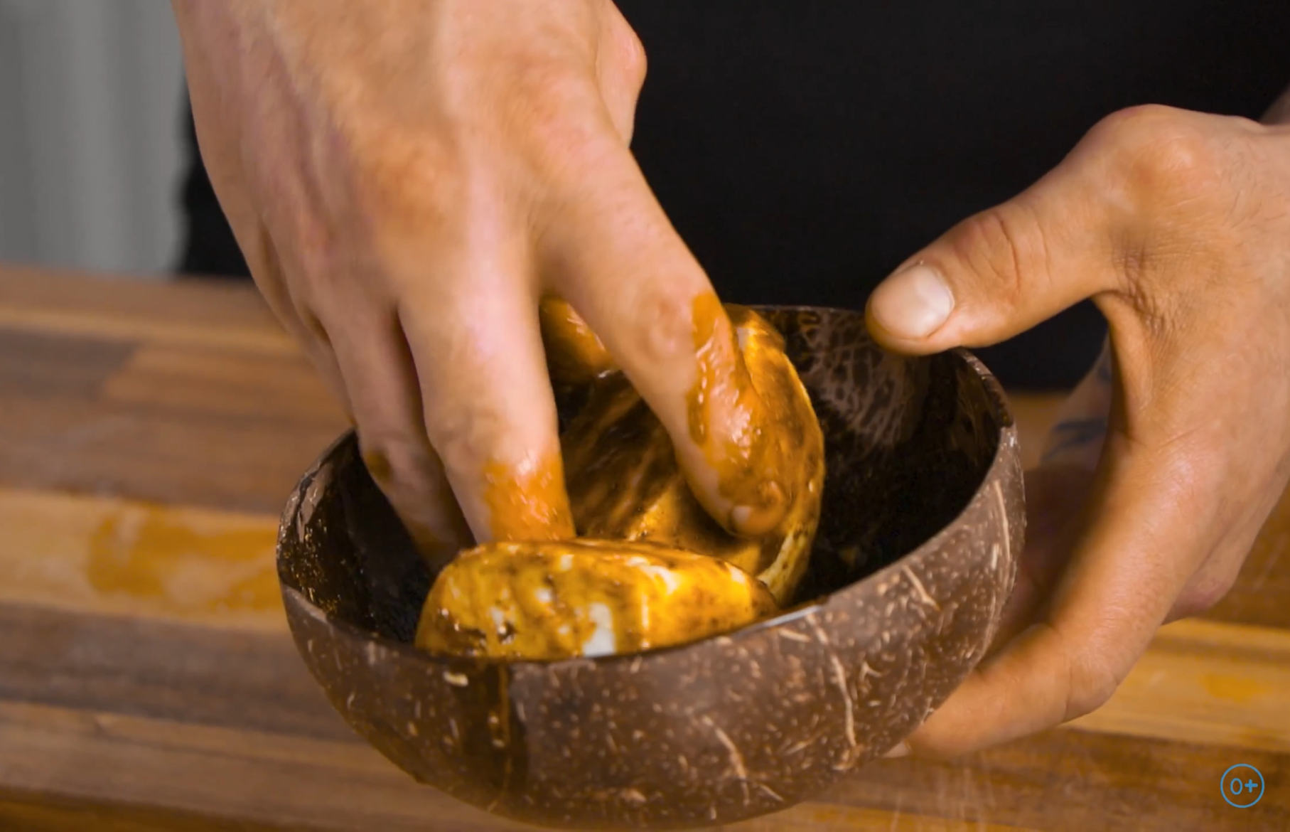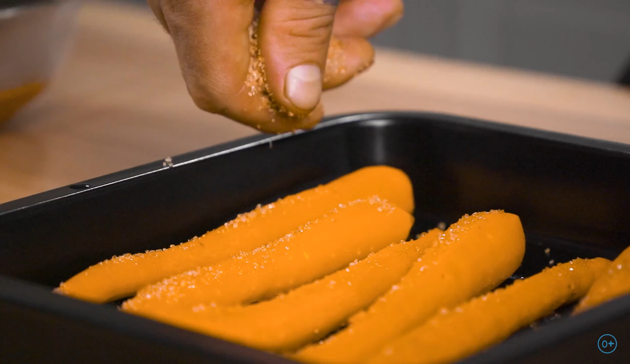 2. Оставить отдохнуть на 15 минут, а затем запекать в аэрофритюре 13 минут при 180°C.