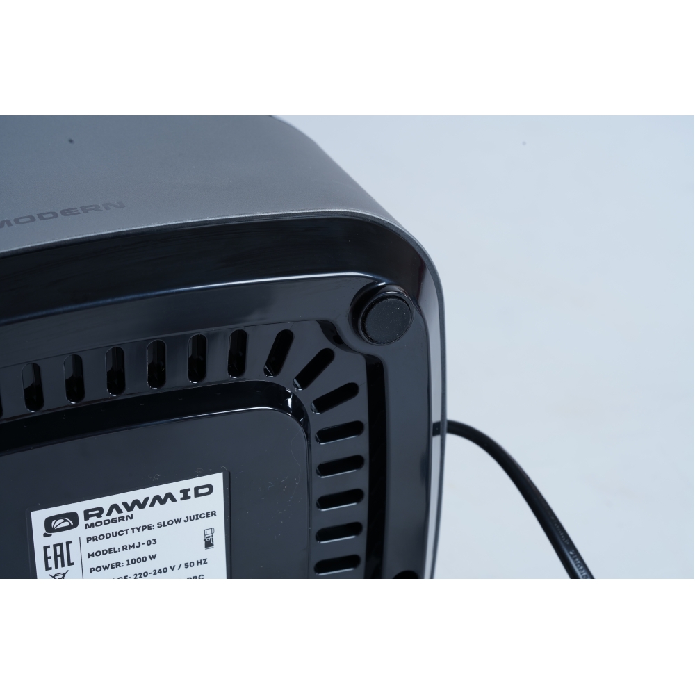 RAWMID Modern RMJ-03 — шнековая соковыжималка нового поколения, созданная для бережного холодного отжима фруктов, овощей, ягод и зелени. Благодаря технологии Cold Press прибор аккуратно перерабатывает продукты при низких оборотах — всего 50–65 об/мин, сохраняя максимум витаминов, вкуса и естественной свежести.