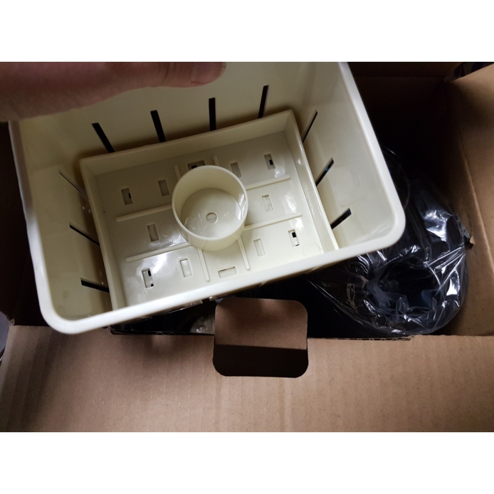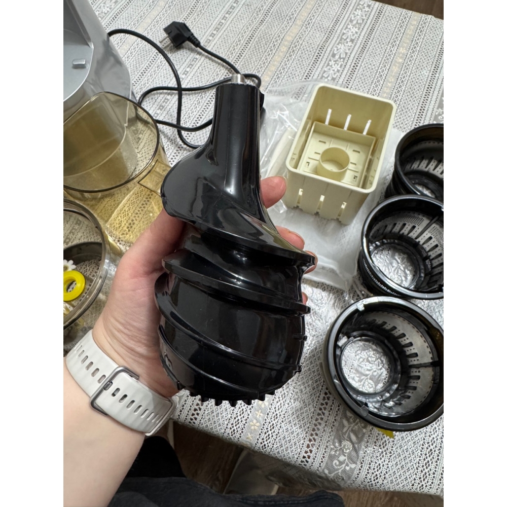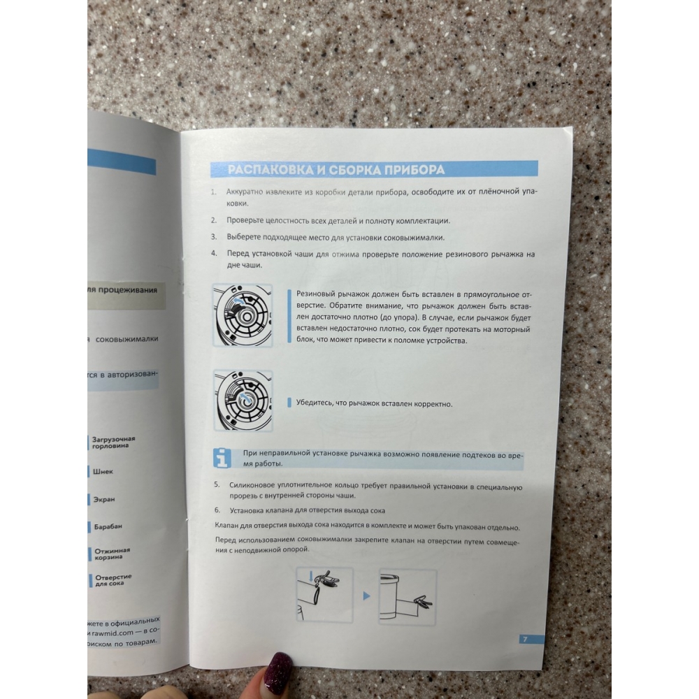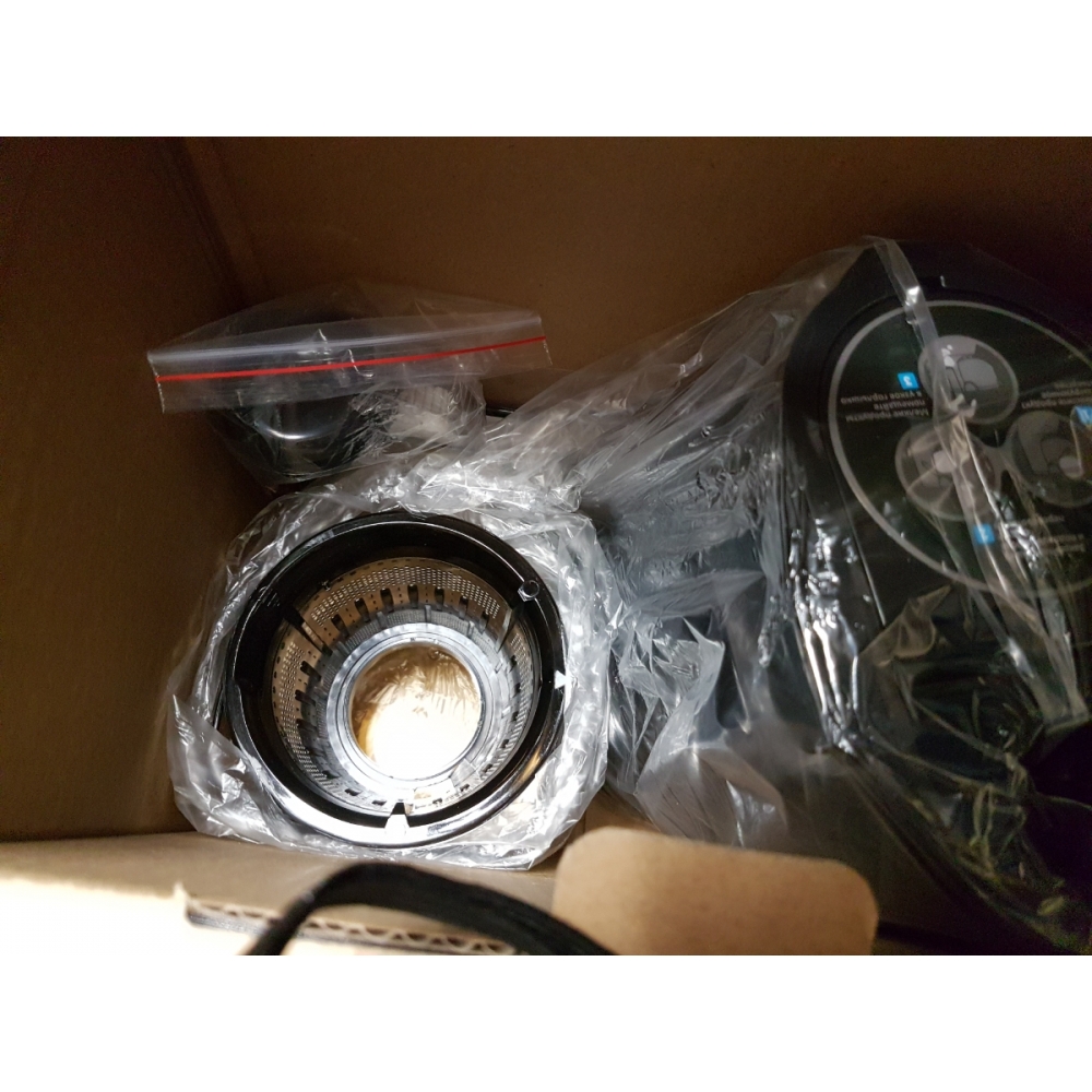 В стандартный комплект соковыжималки Vitamin RVJ-02 входит сетка с мелкими отверстиями для соков, экран-измельчитель для мороженого, а также специальный пресс для тофу. В качестве подарка за фото-отзыв клиенты получают дополнительное сито с крупными отверстиями для смузи и пюре.