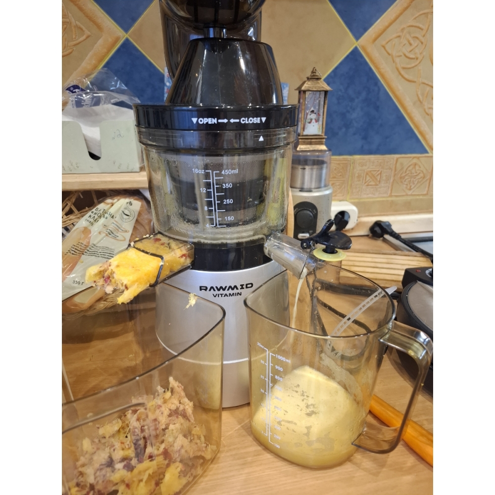 Шнековая соковыжималка RAWMID Vitamin RVJ-02 создана для эффективного и бережного отжима соков из любых продуктов. Благодаря медленному вращению шнека, в напитке сохраняются все витамины, энзимы и антиоксиданты.