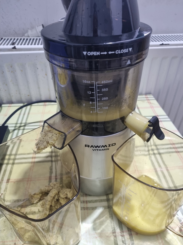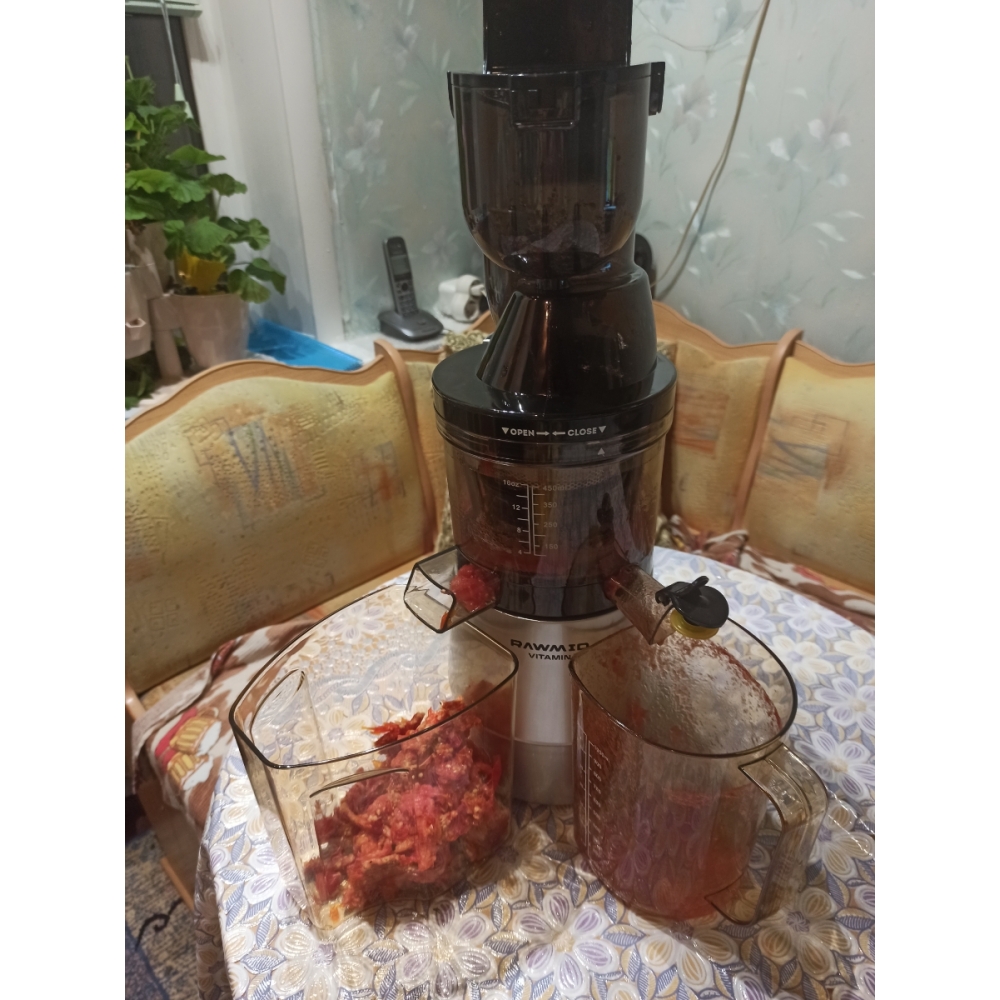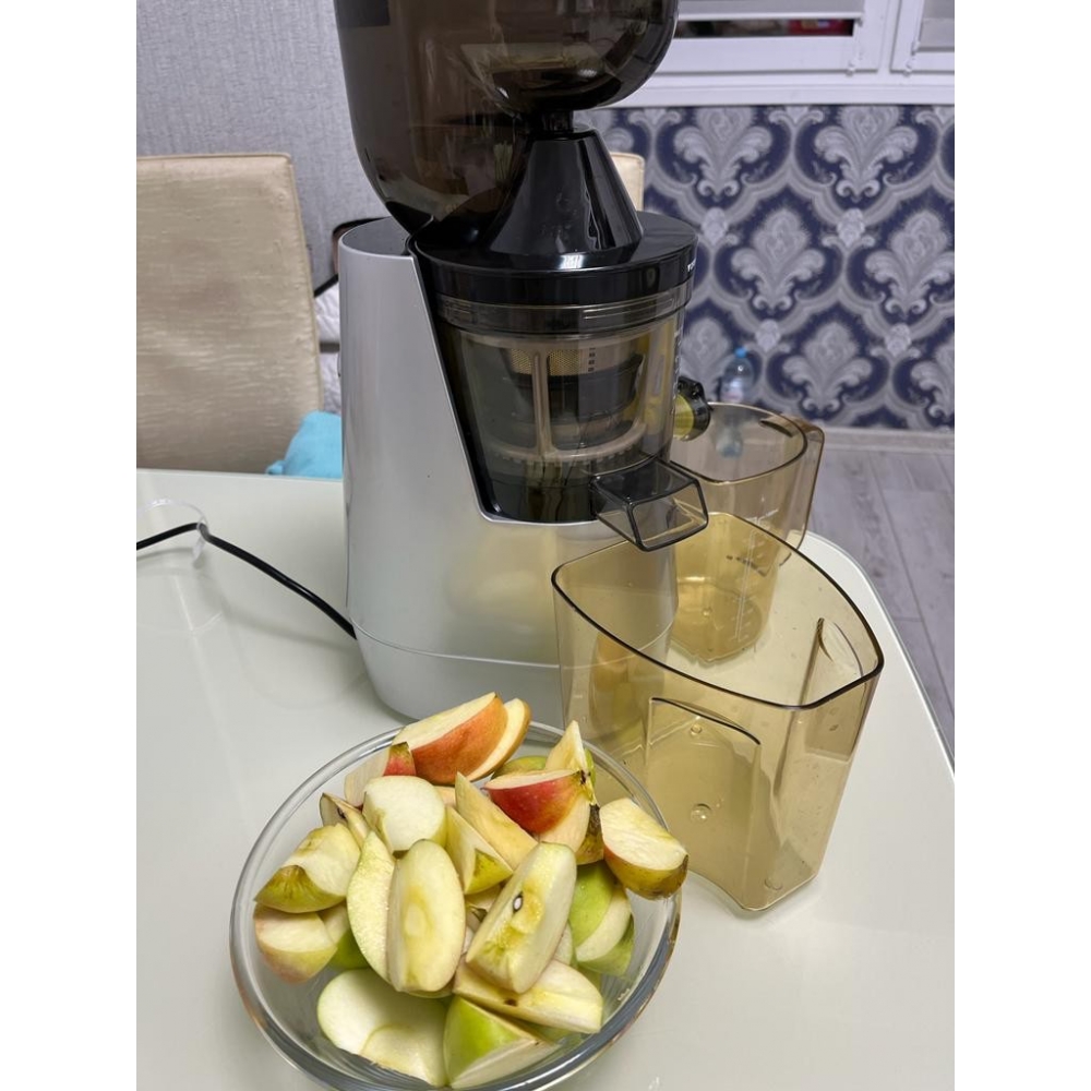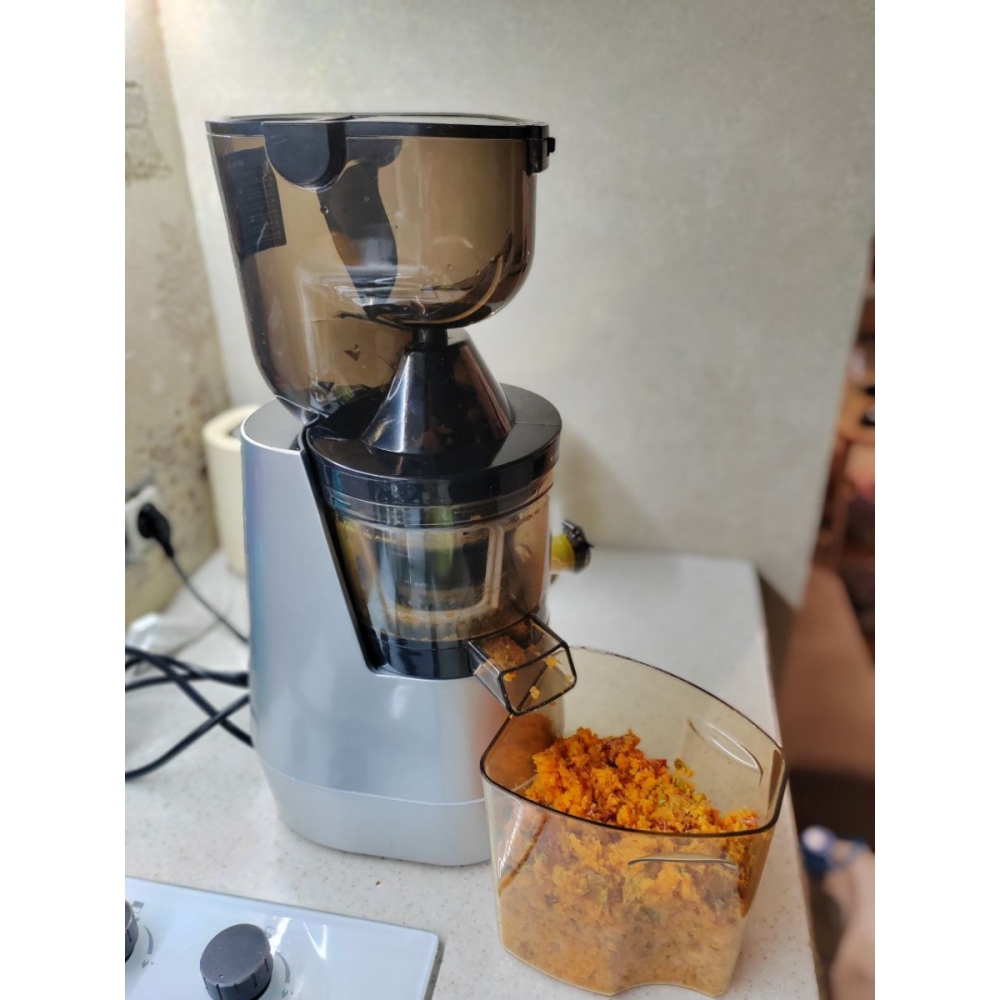 Мотор мощностью 150 Вт тихо работает, поэтому использовать соковыжималку можно даже поздним вечером или ранним утром, никому не мешая. При этом обеспечивается качественный отжим даже твёрдых продуктов, например, моркови. А из орехов можно сделать ореховое молоко.