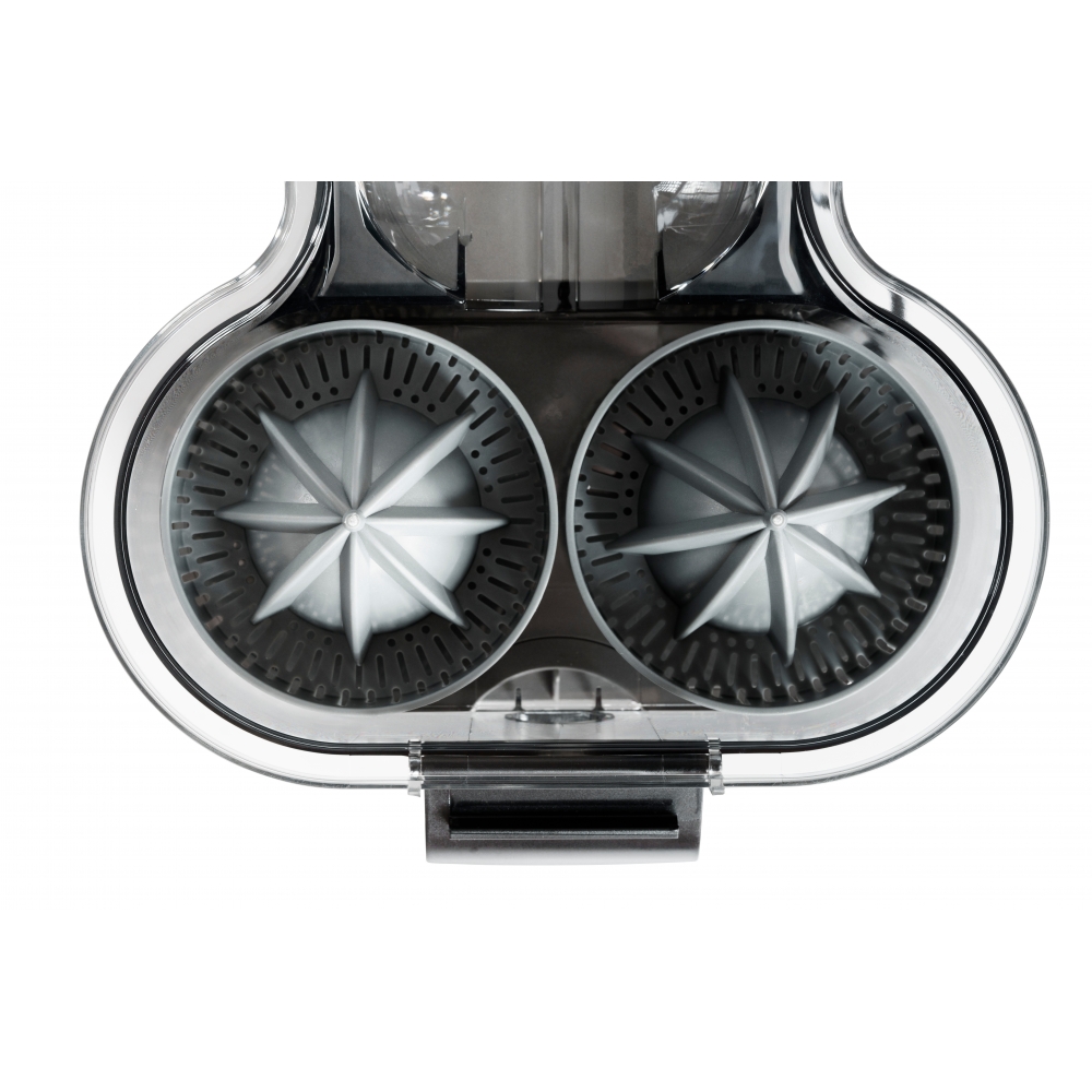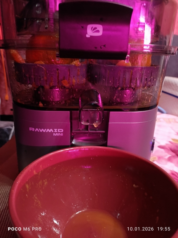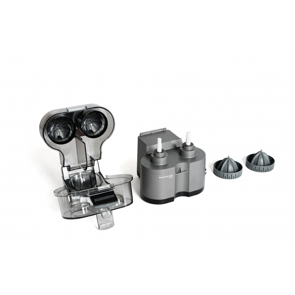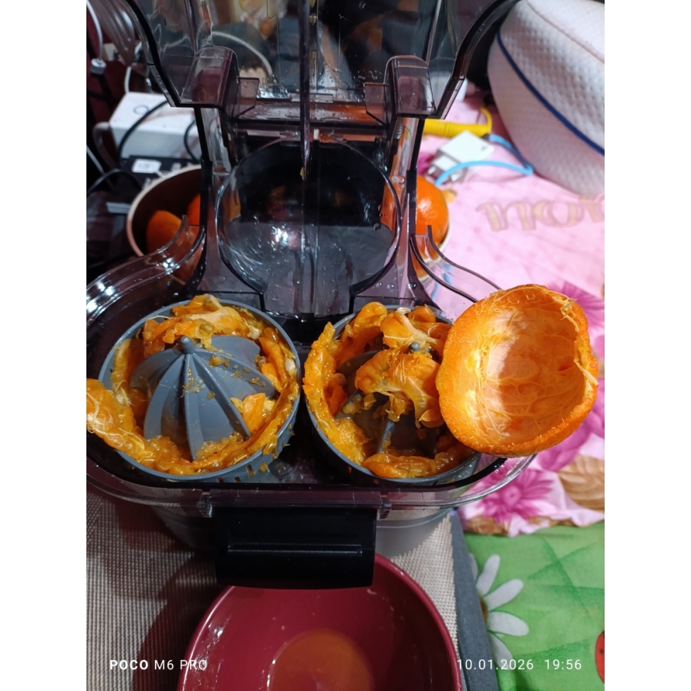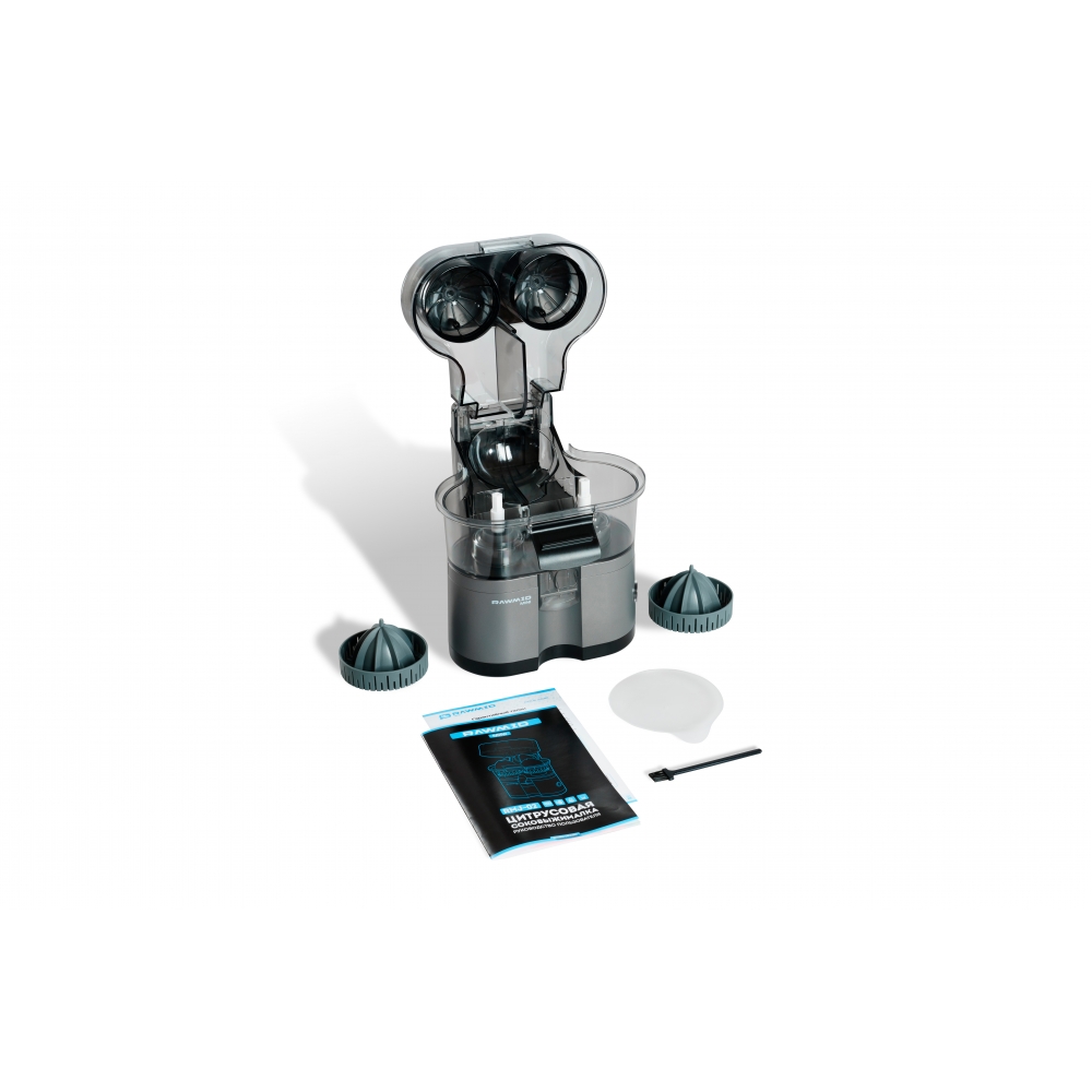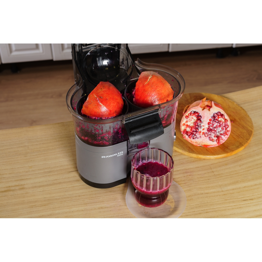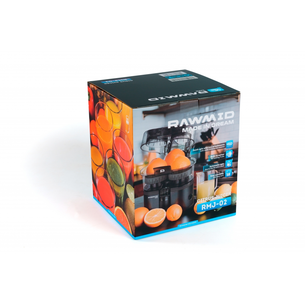 В отличие от большинства моделей, где необходимо удерживать фрукт руками, RAWMID Mini RMJ-02 полностью автоматизирует процесс: встроенный пресс поднимает двойной конус и прижимает половинки фрукта к крышке, извлекая максимум сока. Просто нажмите кнопку — всё остальное прибор сделает сам!