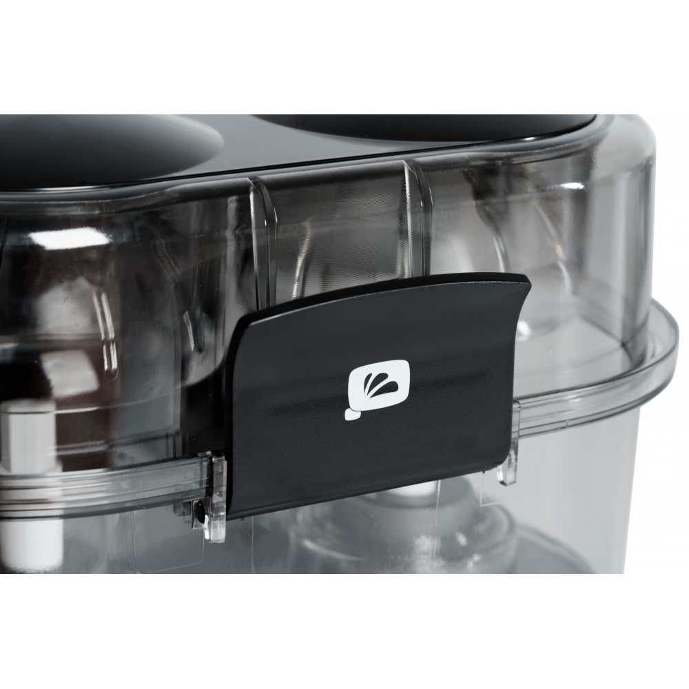 Соковыжималка оснащена острым встроенным ножом в крышке: не нужно заранее разрезать фрукты. Просто положите целый лимон или апельсин — и крышка разрежет его сама!