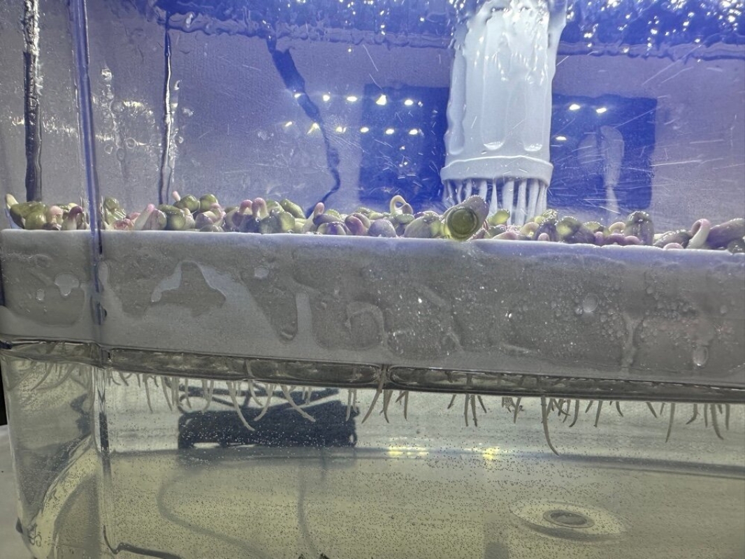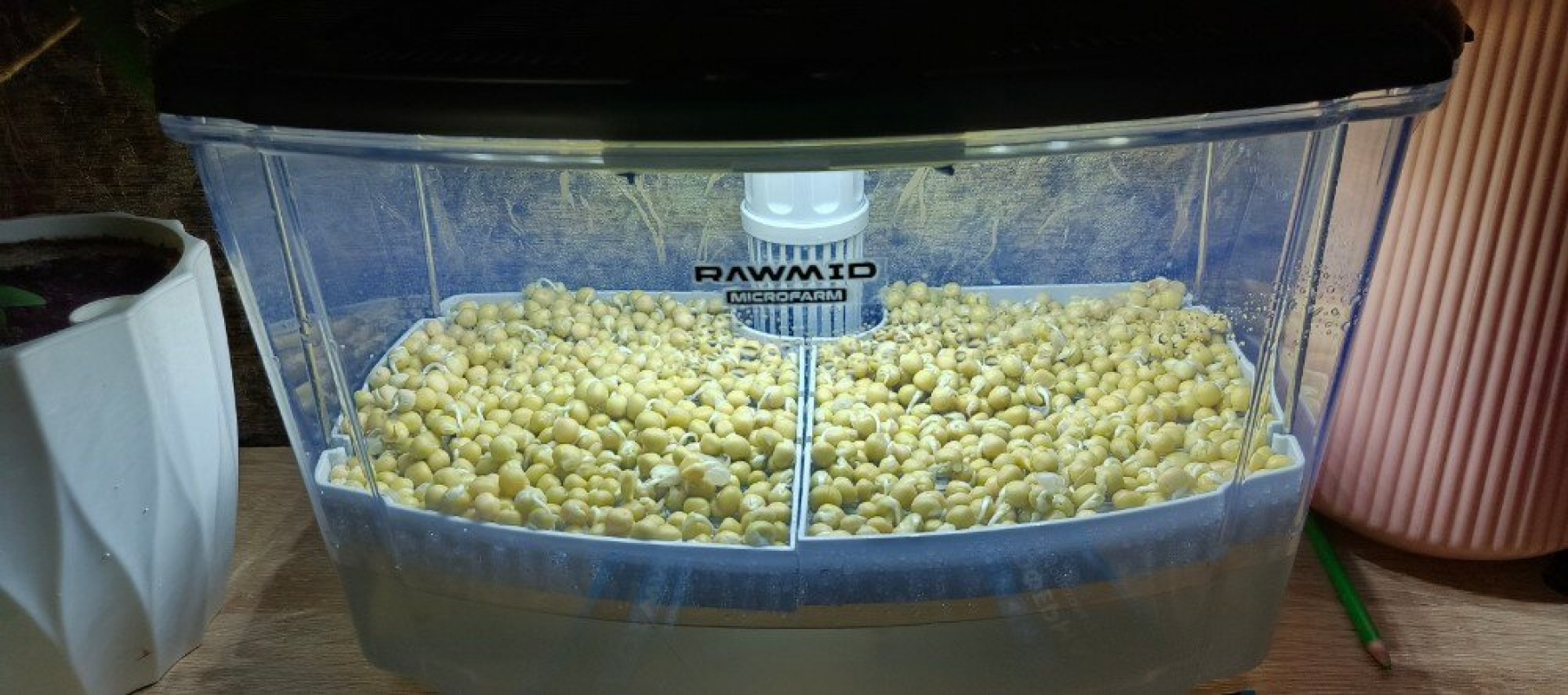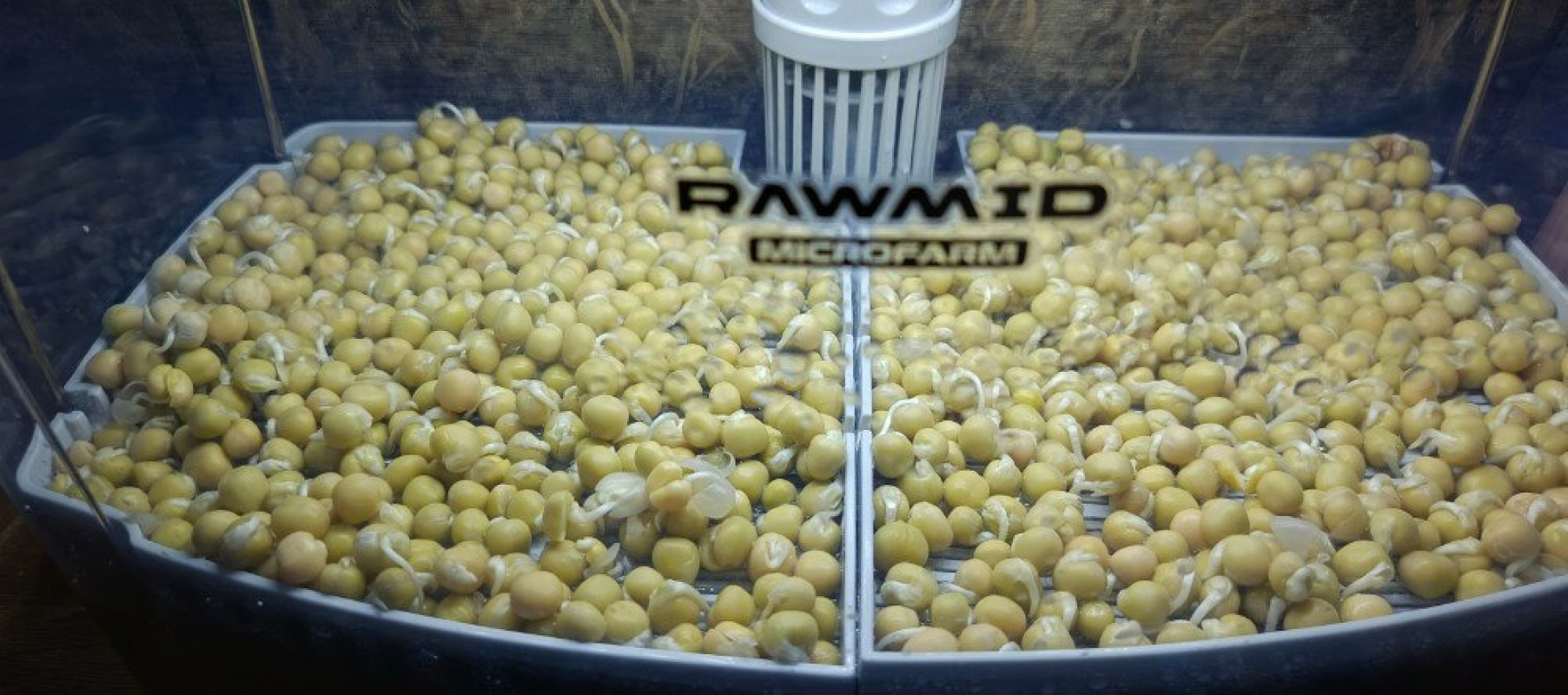 Благодаря особой конструкции, микроферма RAWMID SDM-02 сочетает в себе ещё и гидропонную установку – ростки могут пустить корни прямо в воду и получать питание даже без полива.