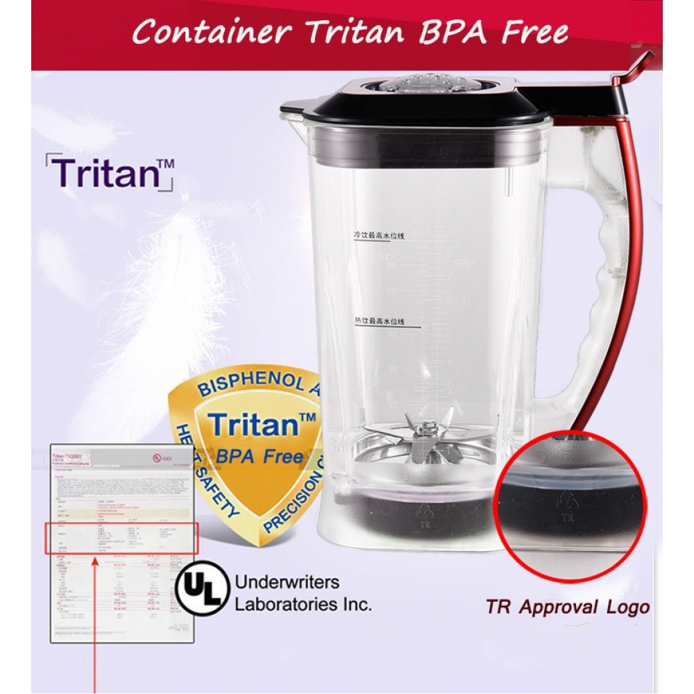 Увеличенный кувшин - 2.5 литра. С такой чашей гораздо проще готовить на семью или делать заготовки, ничем не ограничивая себя. Чаша блендера выполнена из поликарбоната, получившего название Tritan: он является ударопрочным и безопасным пластиком, не содержащим бисфенол-а. Такой материал является оптимальным по множеству параметров: в отличие от стекла он легкий и его практически невозможно разбить, а в отличие от дешевой пластмассы он не дает посторонних запахов, долго сохраняет внешний вид, легко моется.