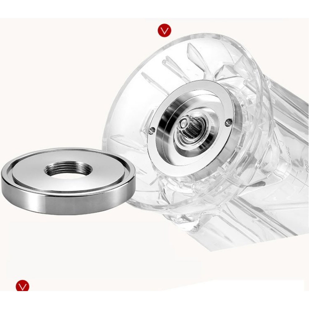 Крышка с толкателем. Особая крышка с отверстием под толкатель отличает профессиональный блендер от обычного. Будучи простым инструментом, толкатель очень упрощает и ускоряет работу, не позволяя продуктам ускользнуть от ножа. Через отвертие, которое закрывается колпачком, можно добавить продукты прямо во время измельчения.