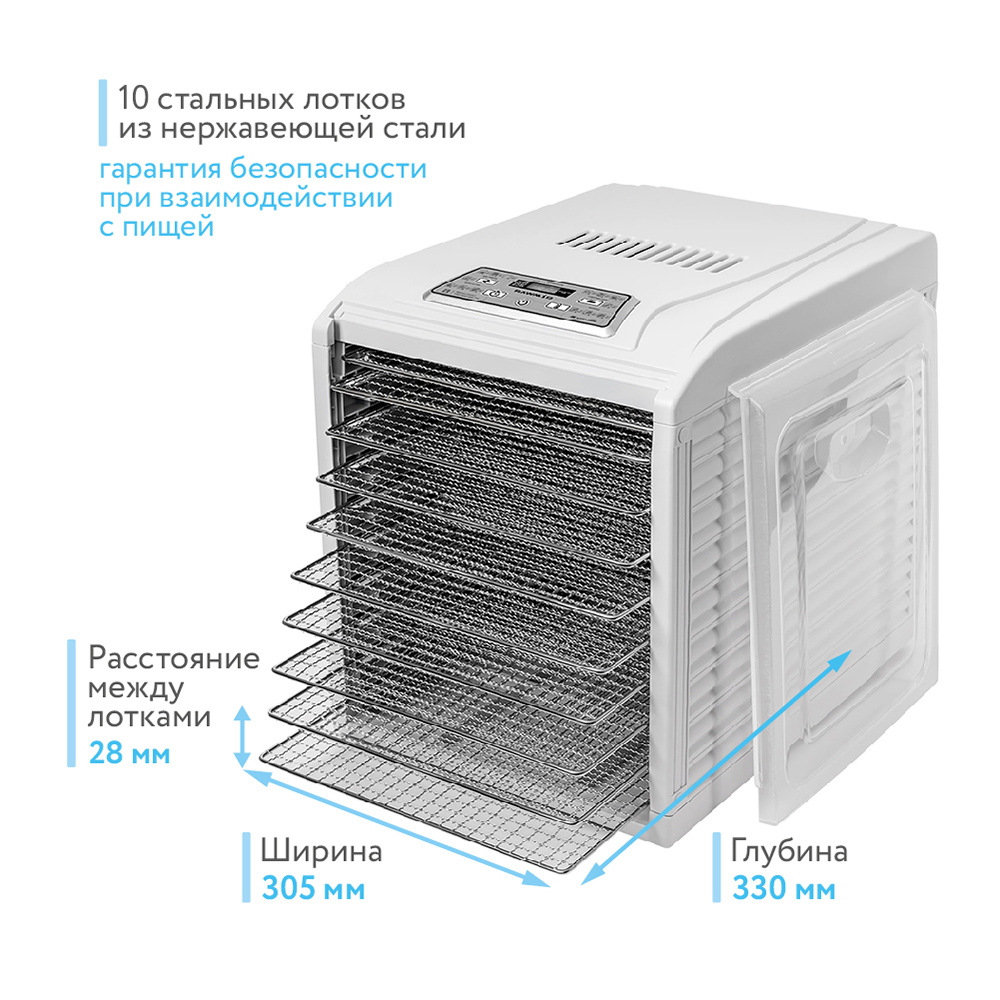 Дегидратор Dream Vitamin DDV-10 со съёмной дверцей и 10 стальными лотками |