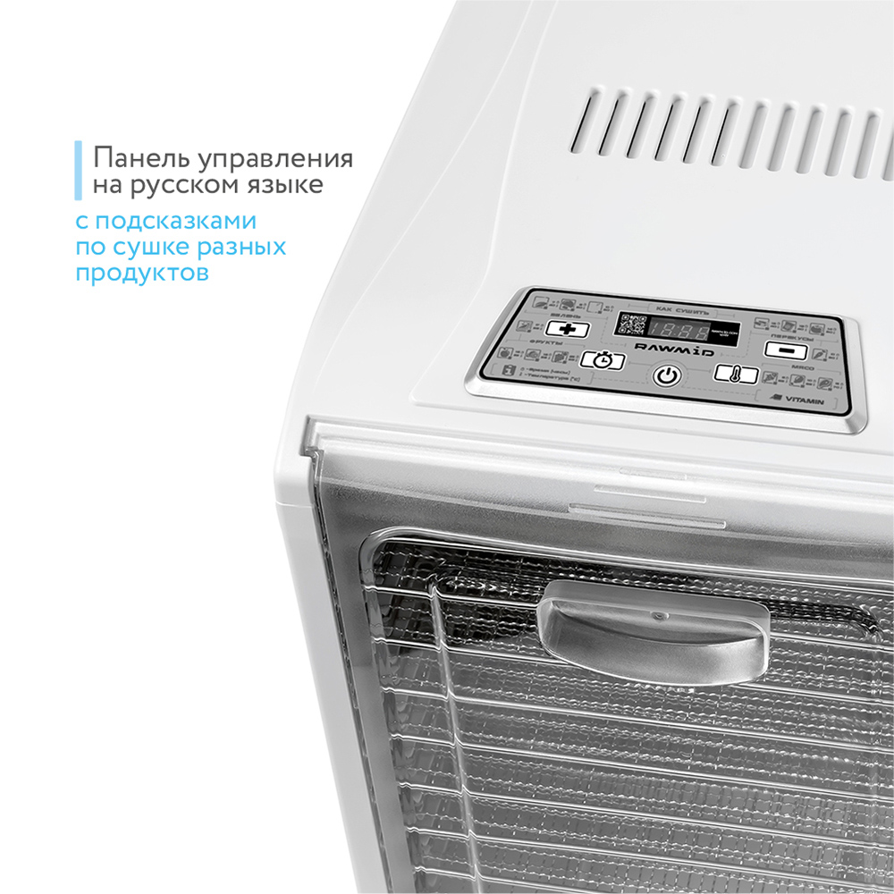 Дегидратор Dream Vitamin от компании RawMID, пожалуй, лучшее воплощение домашней сушилки на сегодня – он сочетает высокое качество, надёжность и функциональность при низкой цене, а размер сушилки позволит подготавливать большие объёмы продуктов. Такой прибор легко разместить в любой квартире, а его возможностей хватит для воплощения множества идей! Почитайте статью о том, чем Dream Vitamin лучше своих аналогов конкурентов.