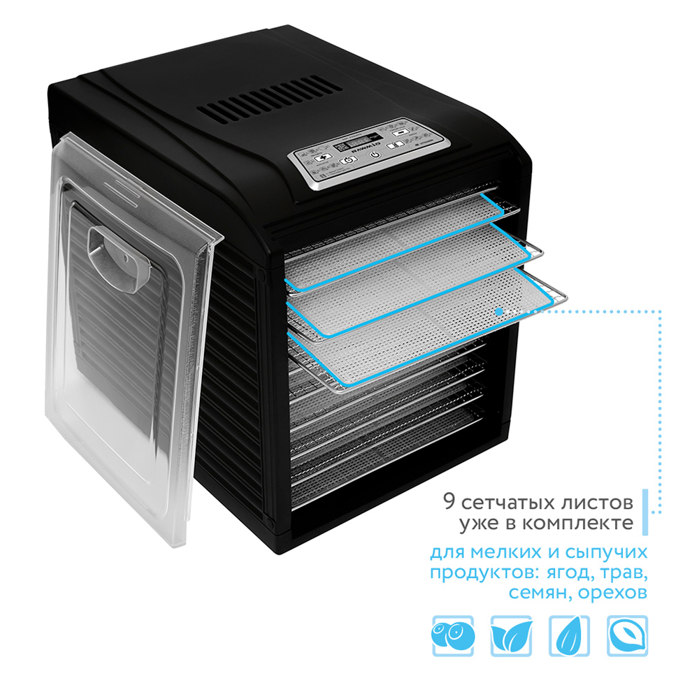 Дегидратор Dream Vitamin – это домашний кухонный прибор, предназначенный для увеличения срока годности продуктов натуральным методом сушки. Сезонные ягоды, фрукты и овощи теперь легко запасти на целый год: сушилка бережно устранит влагу, позволяя сохранить полезные свойства, питательные вещества и микроэлементы.