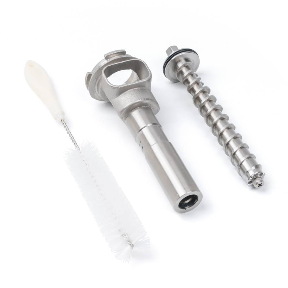 Маслопресс легко разбирается на составляющие детали, которые легко моются по отдельности под проточной водой или протираются от остатков масла салфеткой. Помольную камеру удобно чистить при помощи специальной щёточки, входящей в комплект.