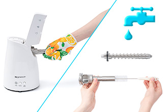 Простая и безопасная  разборка позволяет компактно хранить прибор, а также облегчает процесс очистки деталей после использования маслопресса. Для безопасного извлечения шнека в комплекте предусмотрена специальная терморукавица.