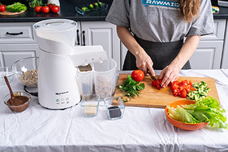А пока маслопресс RAWMID отжимает для Вас свежее ароматное масло, Вы можете порезать салатик.