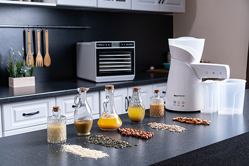 Аппарат отжимает масло на минимально возможной температуре, которая устанавливается автоматически. Масло на выходе имеет температуру 30-40°С и подойдёт для употребления даже сыроедам.