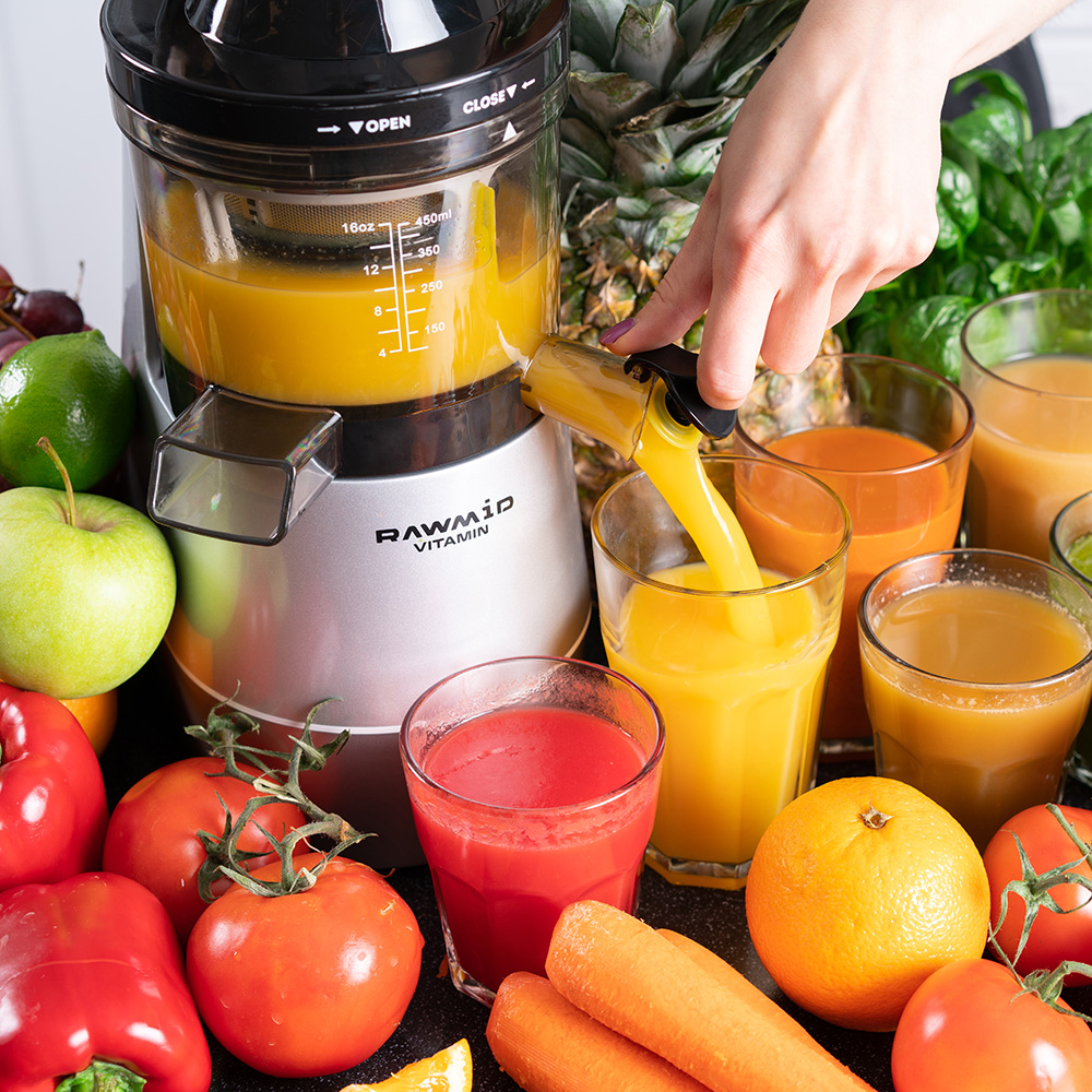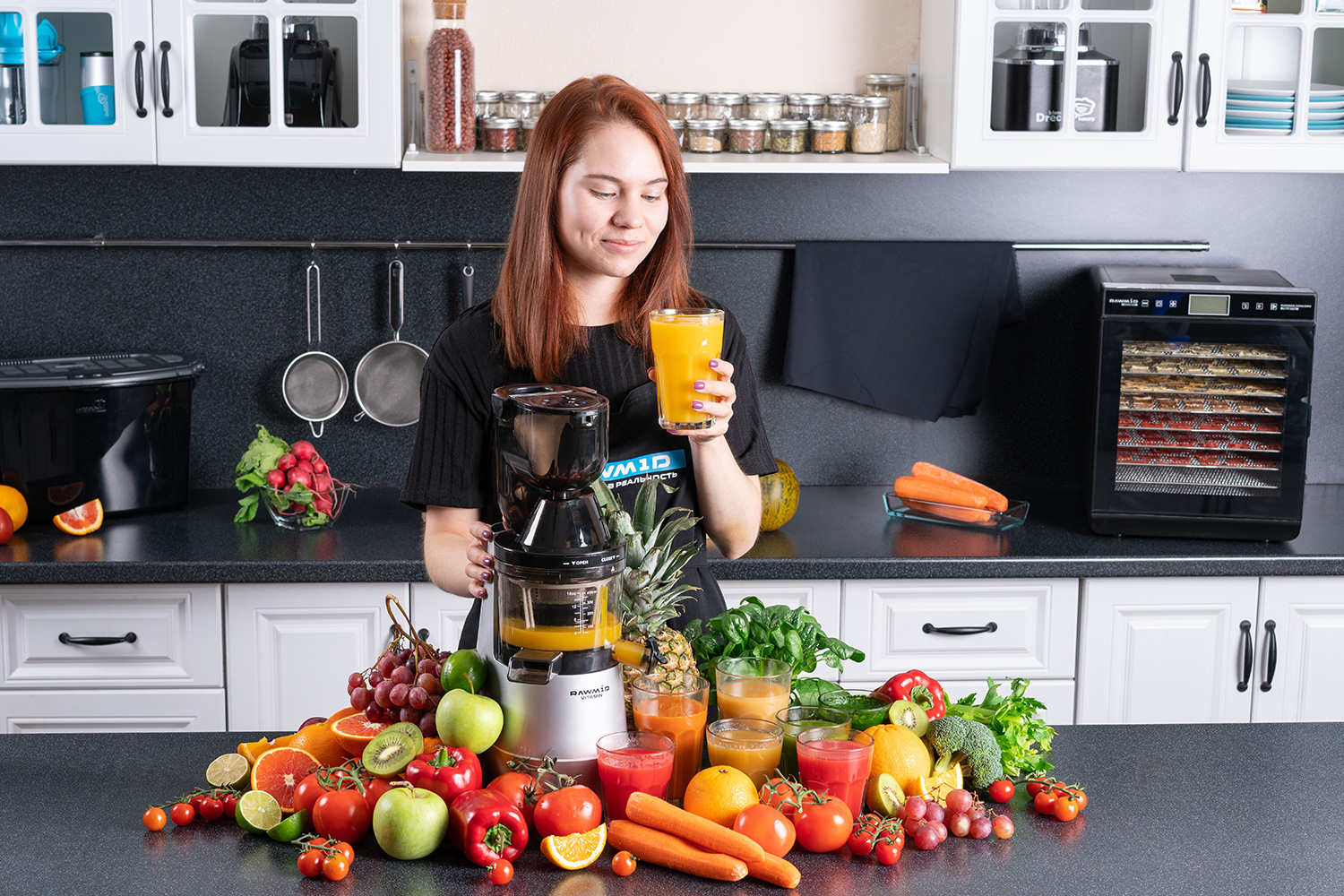 Шнековая соковыжималка RAWMID Vitamin RVJ-02 создана для эффективного и бережного отжима соков из любых продуктов. Благодаря медленному вращению шнека, в напитке сохраняются все витамины, энзимы и антиоксиданты.