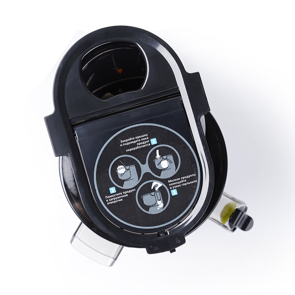 Отжимная корзина, шнек, а также контейнеры для сока и жмыха выполнены из безопасных экологичных материалов без содержания бисфенола-А и других опасных веществ.