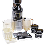 Мотор мощностью 150 Вт тихо работает, поэтому использовать соковыжималку можно даже поздним вечером или ранним утром, никому не мешая. При этом обеспечивается качественный отжим даже твёрдых продуктов, например, моркови. А из орехов можно сделать ореховое молоко.
