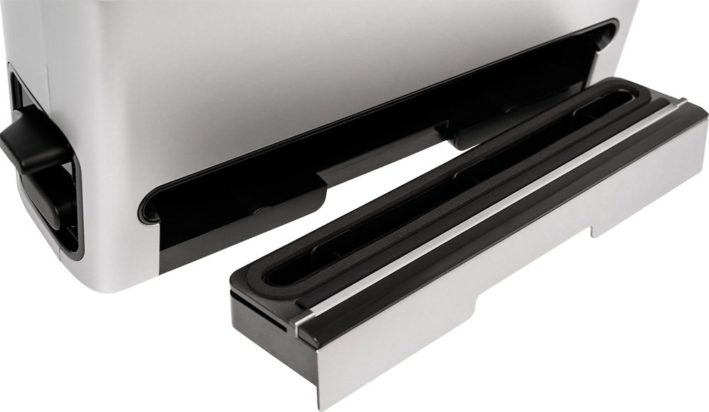 Благодаря встроенному резаку из нержавеющей стали, вы сможете легко и просто отрезать необходимое количество плёночной упаковки. Всего одно движение руки – и нужный кусочек плёнки готов. При необходимости, съёмное лезвие легко заточить или заменить на новое.