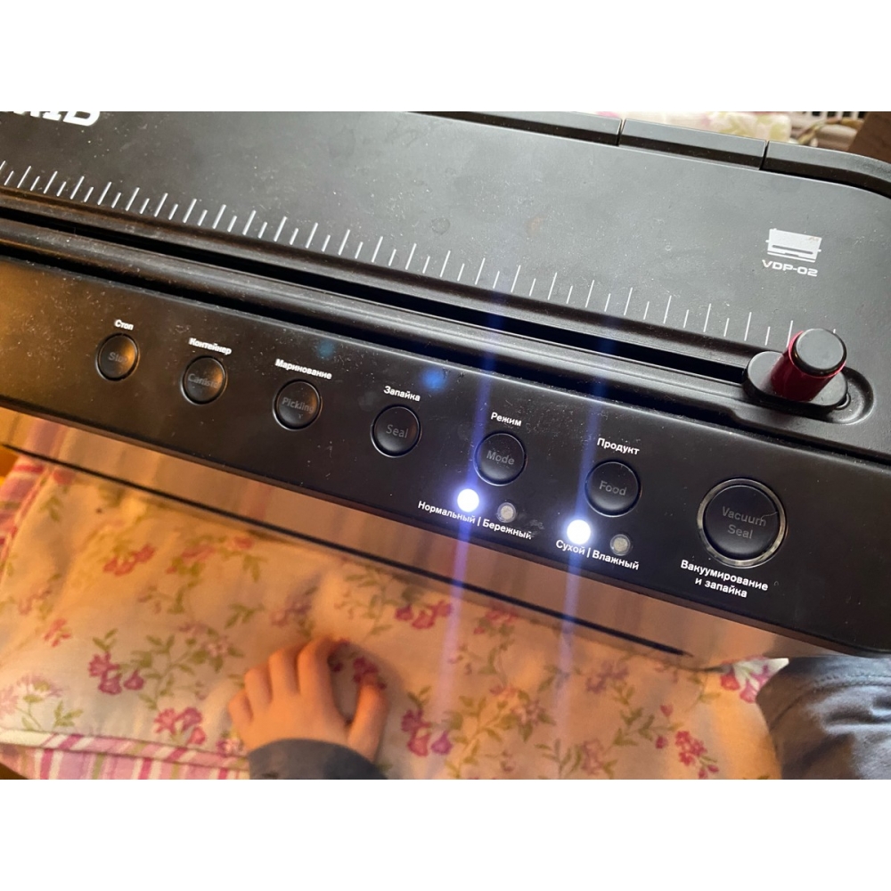 На панели управления Вы можете выбрать подходящий режим вакуумирования в зависимости от типа продукта и желаемого результата. Режимы выбираются по двум параметрам: тип продукта можно выбрать «Сухой» или «Влажный», а способ вакуумирования — «Нормальный» или «Бережный».